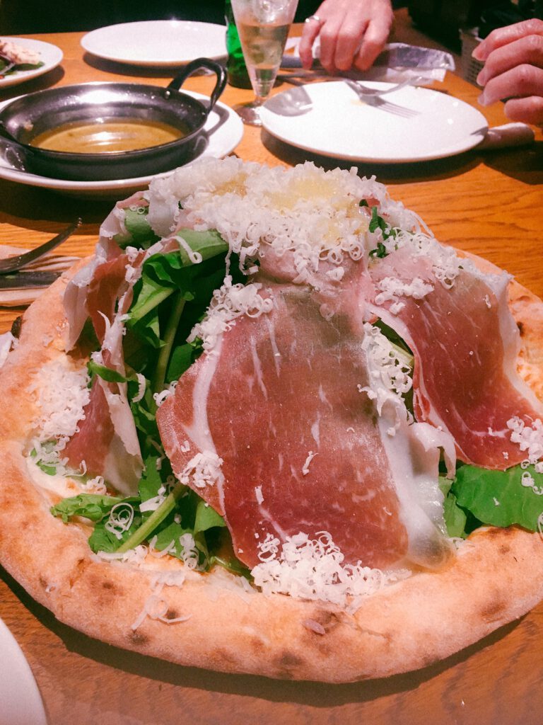 ルッコラ大盛り! 生ハムも美味しい!! 以前夕方のニュースで青砥のピザ屋さんが紹介されていたので ライブでお世話になてるT-spaceママさんに連絡しとところ お店のすぐ裏でした(笑)
