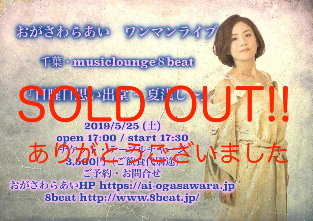 ☆SOLD OUTのお知らせ☆ 皆様のおかげでsoldoutとなりました!! おがさわらあいLIVE in 8beat 『日曜日思い出堂 ~ 夏浅し ~ 』 【日時】2019/05/25(